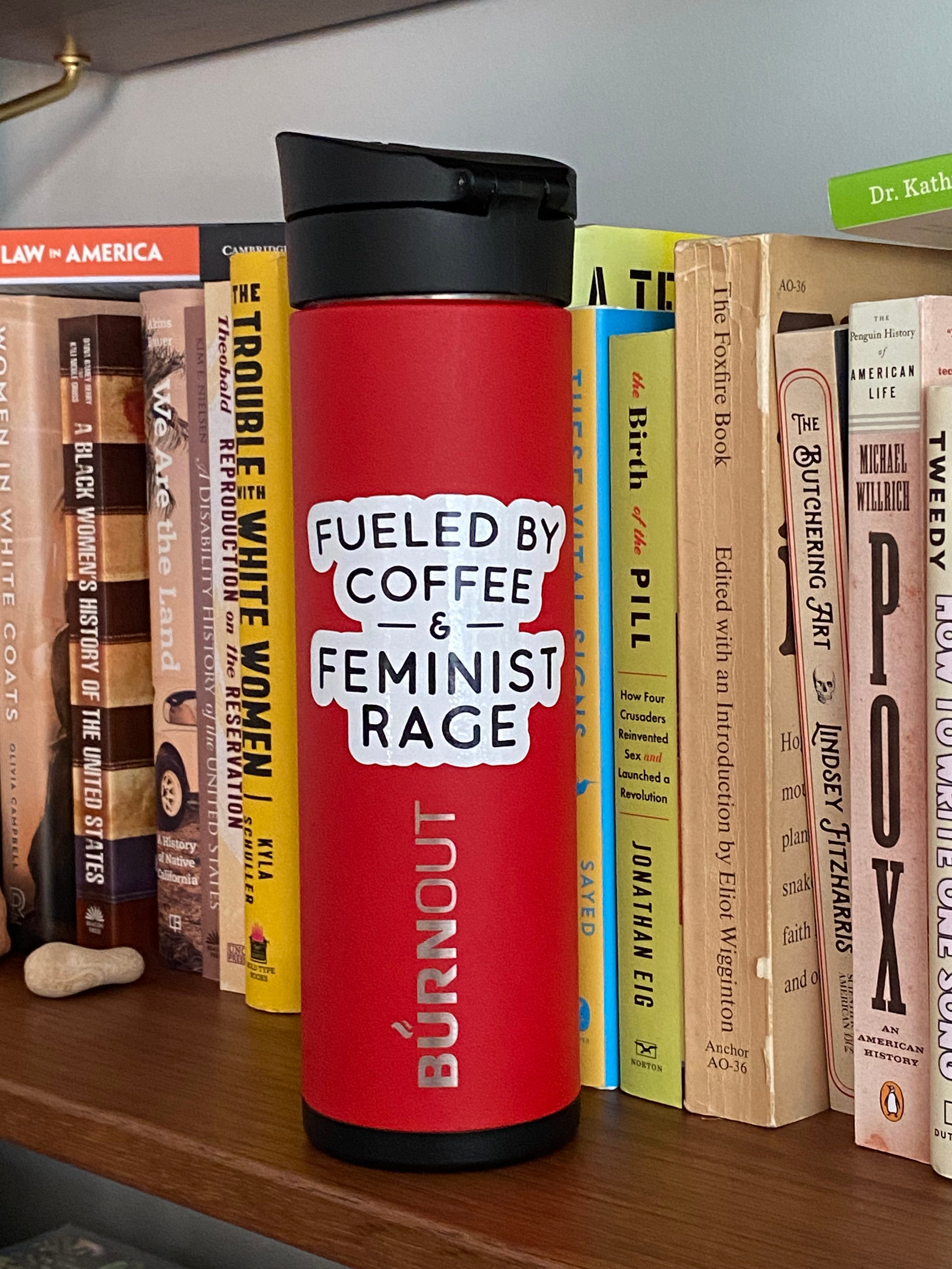 Coffee, but make it Rocket Science: I can pour my piping hot coffee in this Burnout Coffee Mug, and the heat-sink design gets it to a drinkable temperature almost immediately and then keeps it at that temperature for hours. My partner works for an airplane company and they use this HeatZorb material to do cool nerdy technology things, but honestly, I just care about the coffee temperature. I put a “Fueled by Coffee and Feminist Rage” sticker on mine. Honestly, I would never have spent this much on a tumbler for myself, so I’m glad my partner did!