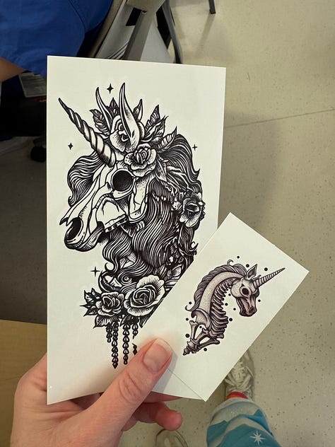 Unicorn Day pizza isn’t Corporate Wellness Pizza - it’s a meal your colleagues made sure you could have between your cases. The donuts, the cake, and the temporary tattoos are from people who genuinely respect you. And all of it is permission to be joyful and silly even though the world is on fire and everything sucks and we can’t control it.