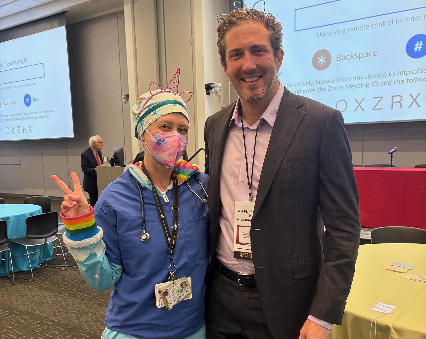 The unicorn onesie periodically comes in handy. In 2025, I wore my onesie to a lecture with Will Flanary, aka Dr. Glaucomflecken, and had a chance to tell him what we had been building in pediatric surgical care, inspired by his representation of pediatricians. I gave him an OR approved unicorn horn to supplement his plush supply.
